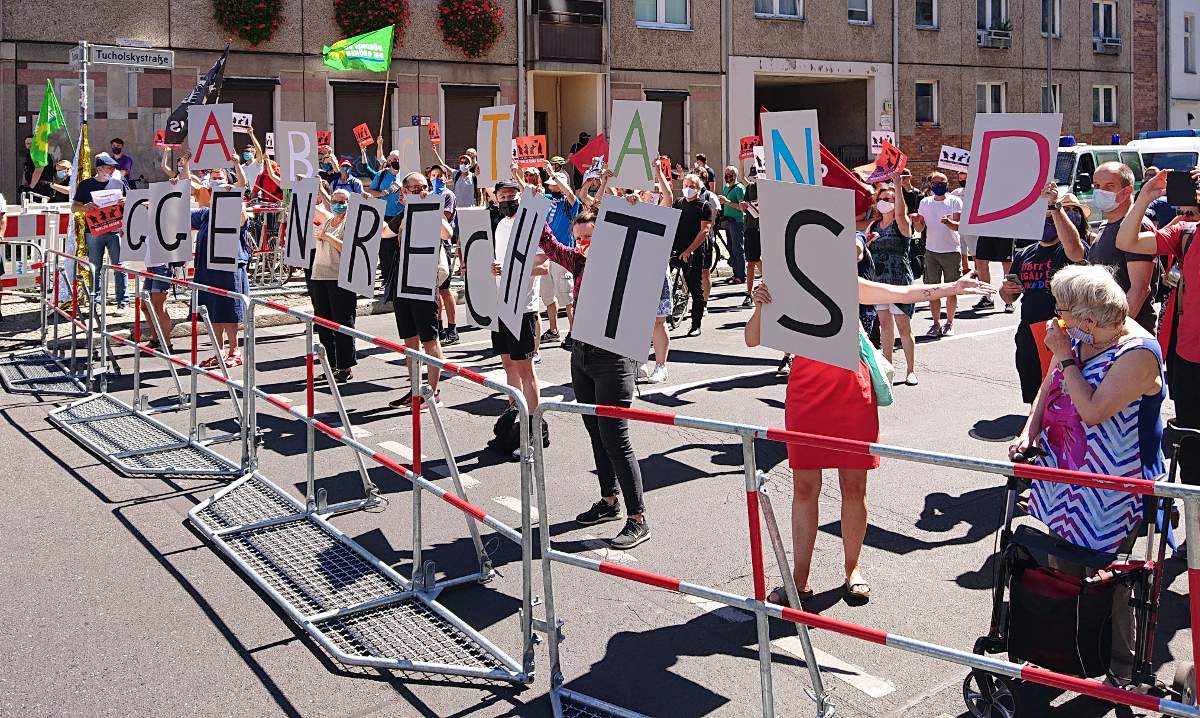 Der Begriff der „Querfront“ kann zudem insofern zu einer verkürzten Analyse des Phänomens beitragen, da keineswegs von einem Gleichgewicht gegensätzlicher politischer Lager gesprochen werden kann. Entsprechend treffend konstatiert Häusler an gleicher Stelle: „Die heutige Bewegung der Pandemie-Leugner*innen kann aber nicht als ‚Querfront‘-Bewegung bezeichnet werden, weil sie keine nennenswert starken linken Strömungen aufweist.“ Schließlich suchen bei den Versammlungen nicht die vermeintlichen „Extremist*innen“ von Rechts und von Links den Schulterschluss. Trotz legitimer Gründe, das staatliche Krisenmanagement in der Pandemie zu kritisieren, gingen emanzipatorische Linke und große Teile der Berliner Zivilgesellschaft vielmehr auf Distanz zu den anfangs „Hygiene-Demos“ genannten Versammlungen, die ab Ende März 2020 von der „Kommunikationsstelle Demokratischer Widerstand“ gestartet wurden. Ab April 2020 formierten sich gar vielfältige Gegenproteste, und bei den sich daran beteiligenden Initiativen und Bündnissen setzten interne Diskussionen und Selbstverständigungsprozesse ein. Es bestand großer Redebedarf über die aktuelle Krisensituation und das staatliche Handeln – insbesondere über die Aussetzung des Grundrechts auf Versammlungsfreiheit in Berlin im März und April. Klar blieb jedoch bei aller Kritik an den staatlichen Maßnahmen zur Eindämmung der Pandemie die klare Abgrenzung gegenüber den sich etablierenden „Querdenken“-Protesten.