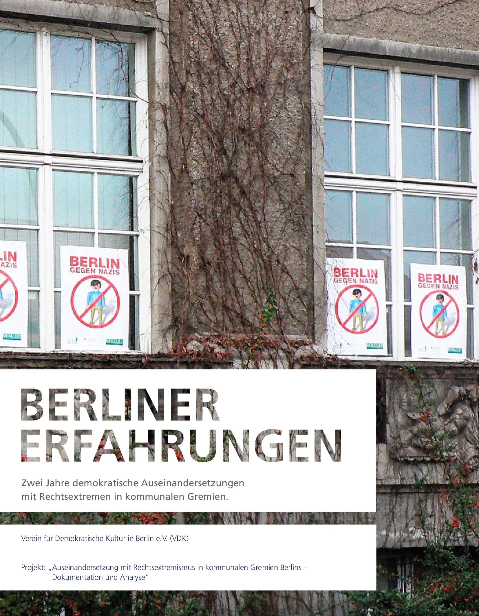 Eine Publikation entstanden im Kontekt des Projekts „ Auseinandersetzung mit Rechtsextremismus in kommunalen Gremien Berlins – Dokumentation und Analyse“. Berliner Erfahrungen – Zwei Jahre demokratische Auseinandersetzungen mit Rechtsextremen in kommunalen Gremien (2008); 60 Seiten; Hg.: VDK e.V. Download