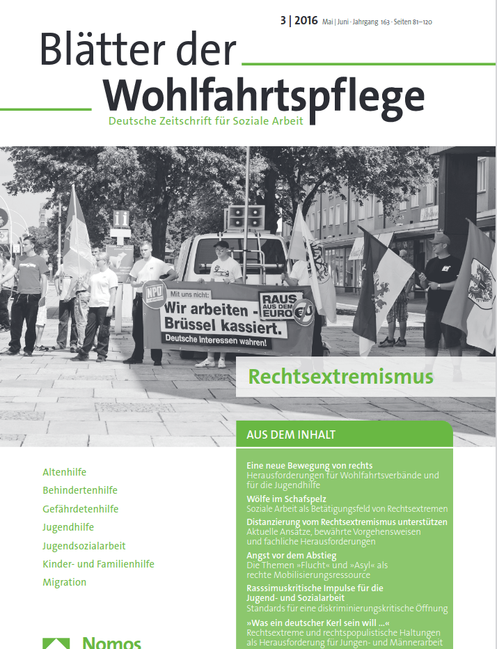 Klose, Bianca: Wölfe im Schafspelz: Soziale Arbeit als Betätigungsfeld von Rechtsextremen. In: Blätter der Wohlfahrtspflege, Jahrgang 163 (2016), Heft 3.