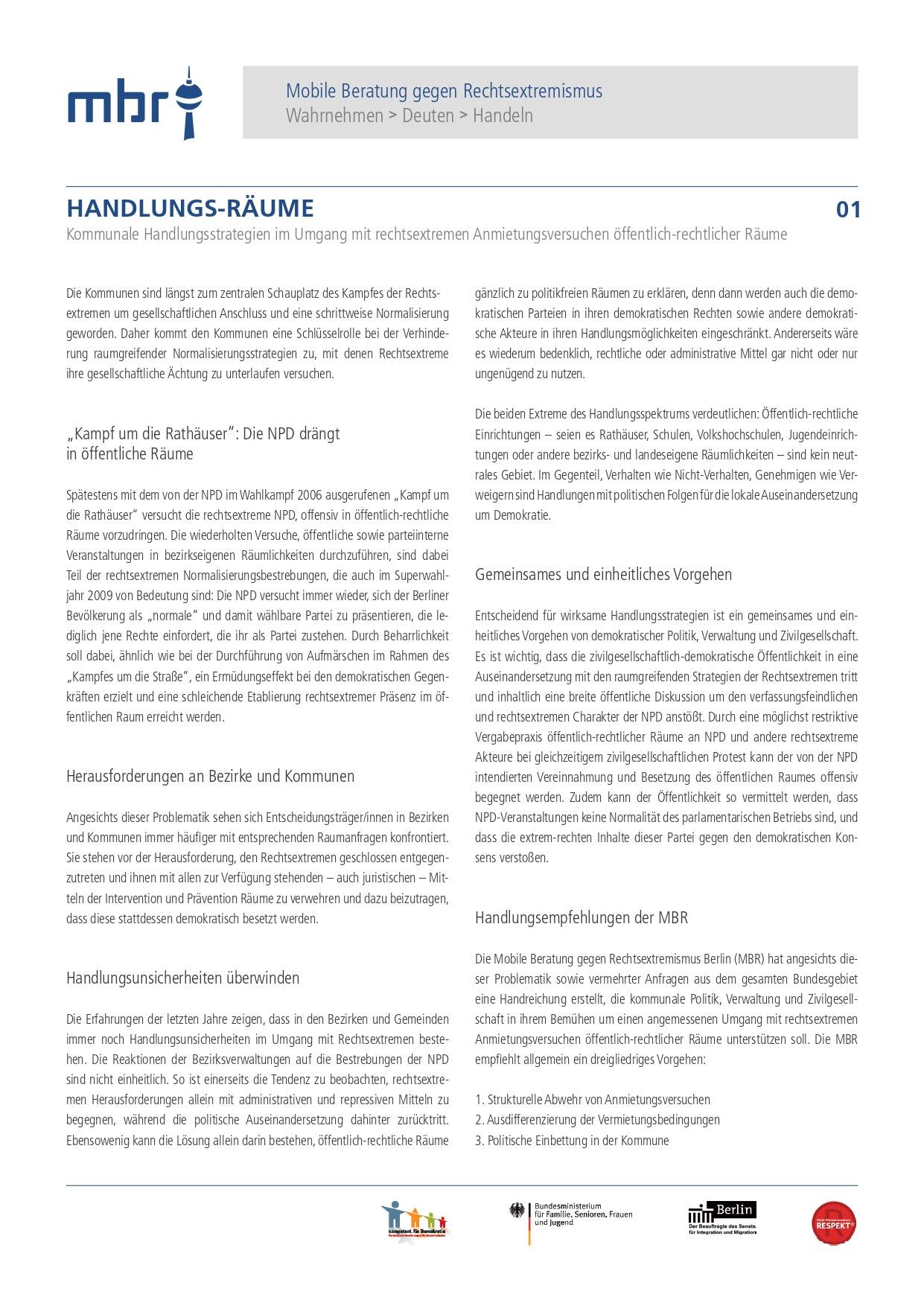 Kommunale Handlungsstrategien im Umgang mit rechtsextremen Anmietungsversuchen öffentlich-rechtlicher Räume.