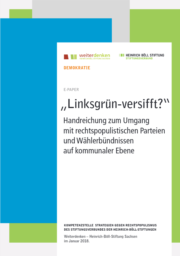 Heinrich-Böll-Stiftung Sachsen: „Linksgrün-versifft?“ – Handreichung zum Umgang mit rechtspopulistischen Parteien und Wählerbündnissen auf kommunaler Ebene, Dresden 2018.