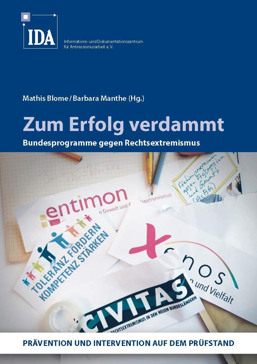 Klose, Bianca: Professionalisierung und Veränderung zivilgesellschaftlicher Einrichtungen durch die Förderung über Bundesprogramme. In: Blome, Mathis; Manthe, Barbara im Auftrag des Informations- und Dokumentationszentrums für Antirassismusarbeit (IDA) e.V.: Zum Erfolg verdammt. Bundesprogramme gegen Rechtsextremismus. Prävention und Intervention auf dem Prüfstand. Düsseldorf 2014.